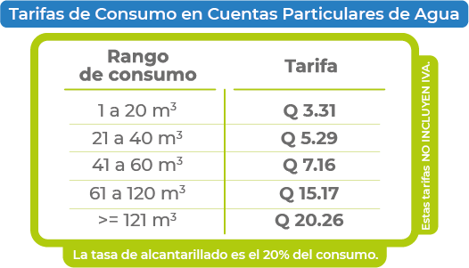 La Empresa Municipal de Agua de la Ciudad de Guatemala (EMPAGUA) informa a los vecinos y usuarios del servicio de agua potable que, a partir del lunes 1 de diciembre de 2025, entran en vigencia las nuevas tarifas por consumo de agua potable, así como el nuevo cargo fijo del servicio medido, de conformidad con lo aprobado por su Honorable Junta Directiva.
